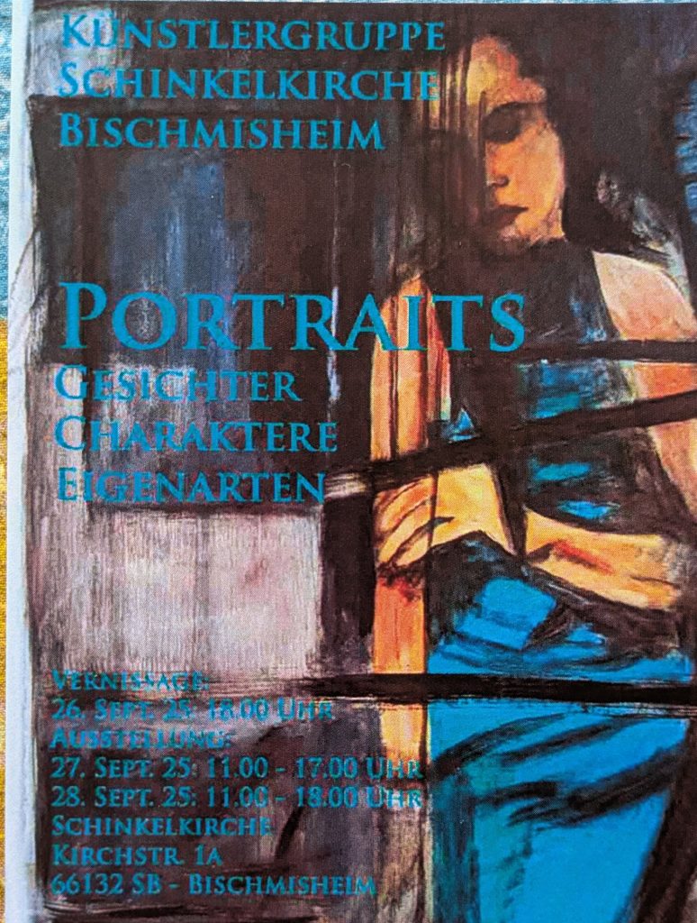 Die Hürden sind also hoch. Vielleicht ist deshalb das Selbstporträt, bei dem der Künstler nur sein eigenes Ich durchdringen muss, in der Kunstszene sehr beliebt – kaum ein namhafter Maler hat darauf verzichtet. Frauen waren übrigens lange Zeit nahezu ausschließlich Porträt-Objekte. Sie wurden zwar gemalt, durften aber nicht selbst zum Pinsel greifen. Das hat sich zum Glück geändert und in der Künstlergruppe Schinkelkirche Bischmisheim hat sich das Geschlechterverhältnis zugunsten der Frauen verändert: Neun Mitglieder der Gruppe beteiligen sich an der Ausstellung, davon sieben weiblich. Ihre Bilder zeigen Petra von Ehren-Hiry, Marlene Grund, Monika Himber, Ruth Lavall, Horst Rauhoff, Petra Schuster, Wida Taban-Amiri, Werner Thome und Brigitte Weiand.