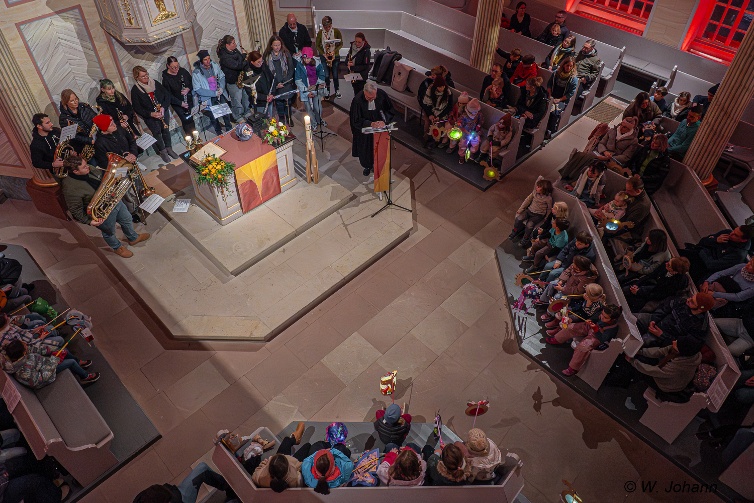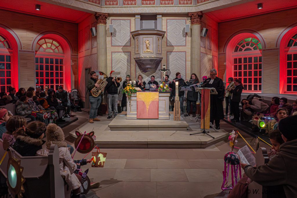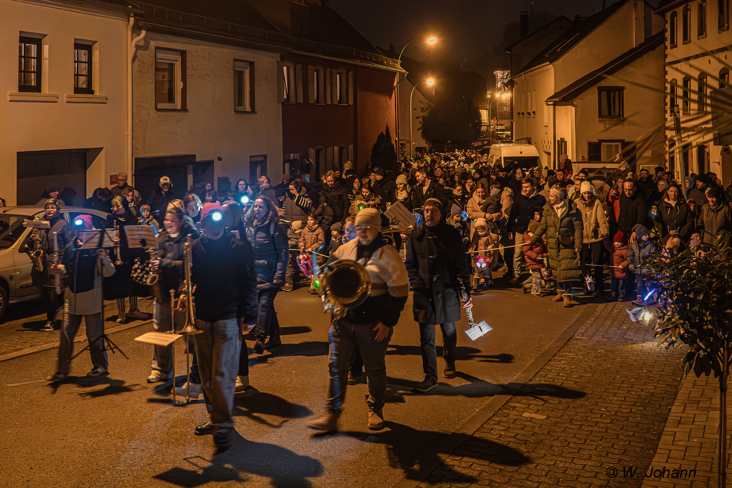 Auch in diesem Jahr lud der Kulturring Bischmisheim zum traditionellen Laternenumzug zu St. Martin ein. Nach der Andacht mit Prädikant Michael Diner ging es mit St. Martin im Doppelpack und unter musikalischer Begleitung des Orchestervereins zum Martinsfeuer auf dem Turnplatz.