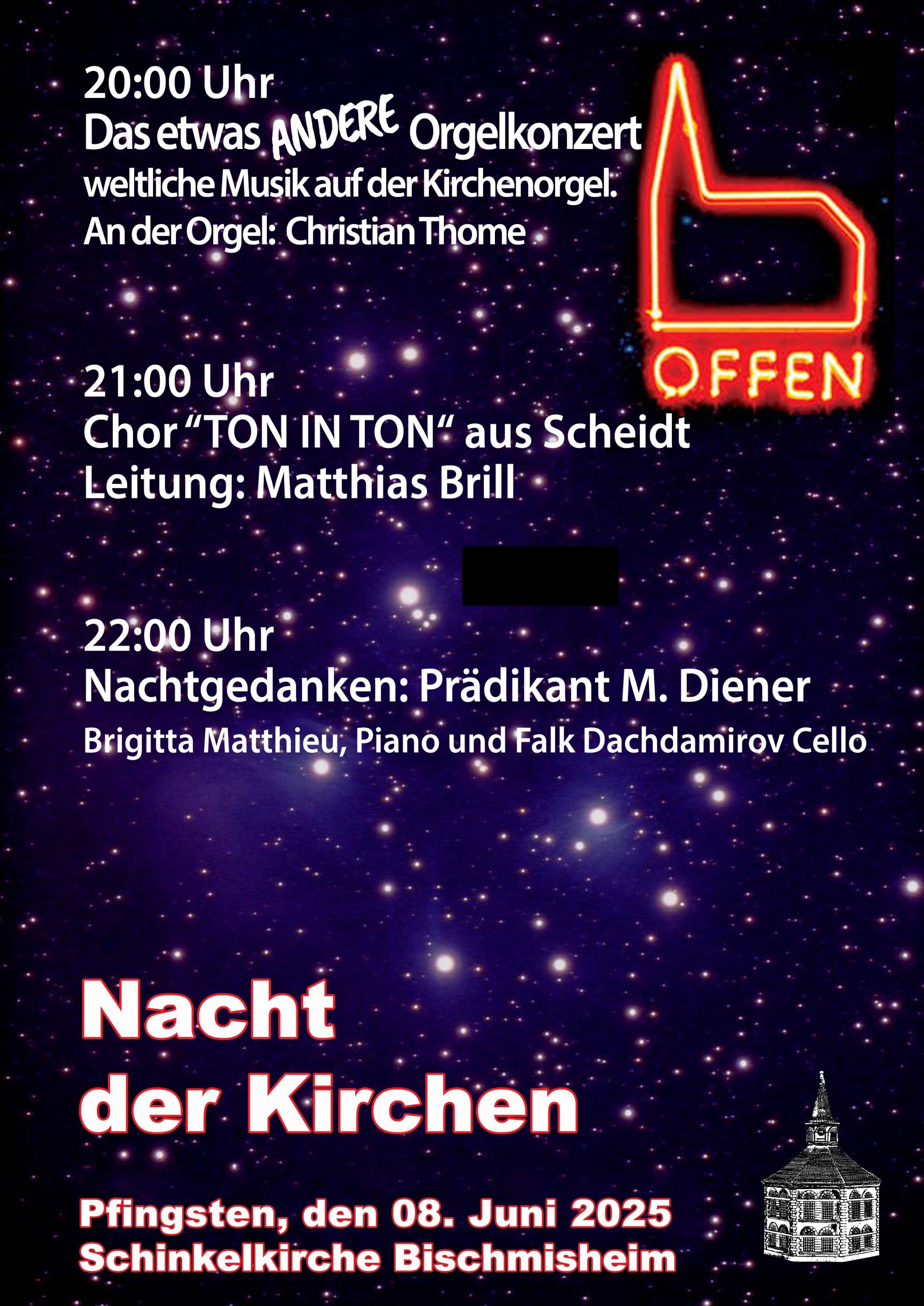 Die Ev.Gesamtkirchengemeinde Saarbrücken-Ost nimmt auch in diesem Jahr an der Aktion „Nacht der Kirchen“ teil.