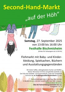 Wir nehmen vom 25.02.-10.03.25 Anmeldungen per E-Mail, 2ndhand.bheim@web.de, entgegen. Über die Tischvergabe entscheidet das Los.