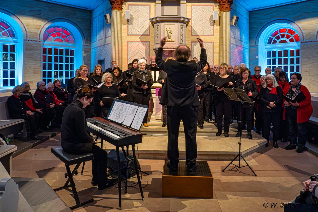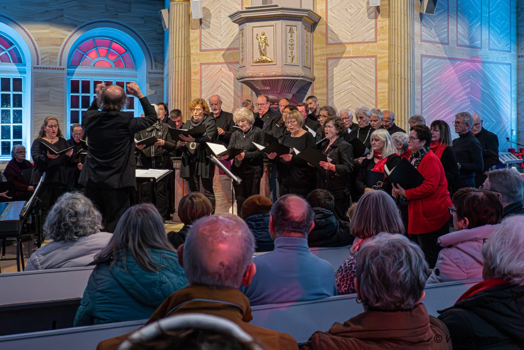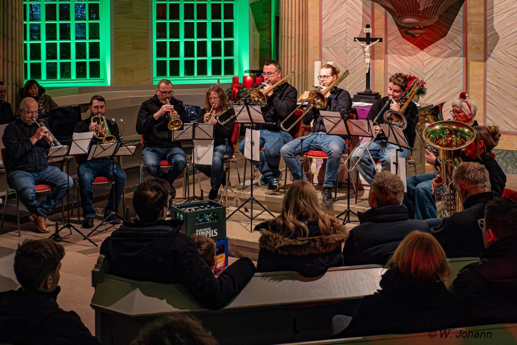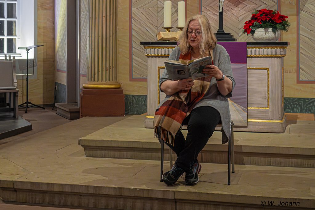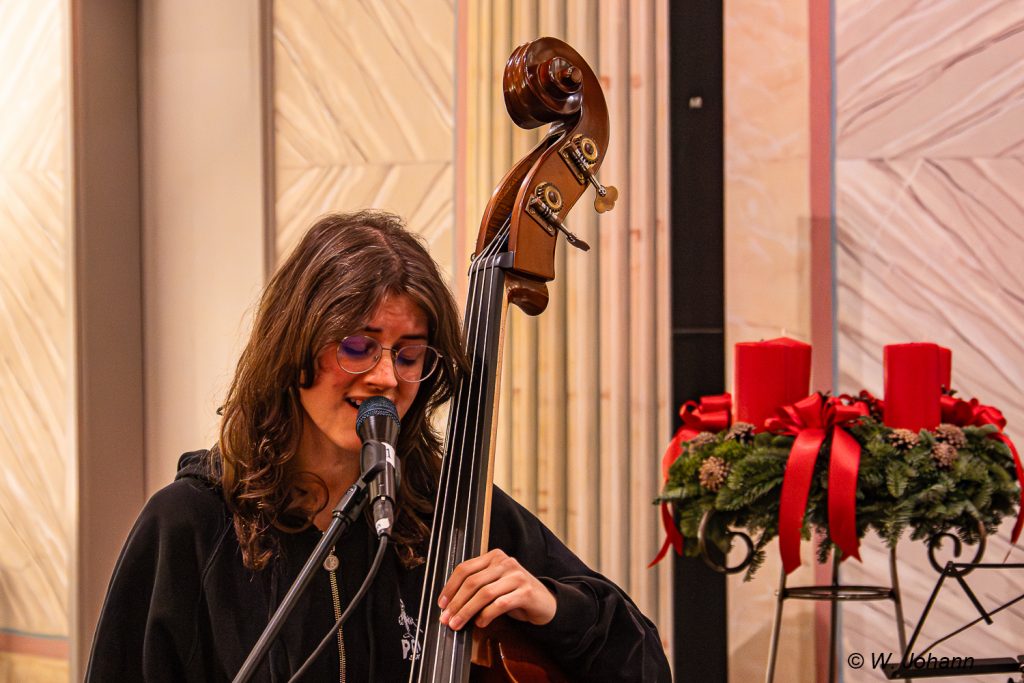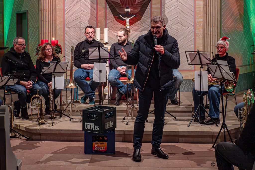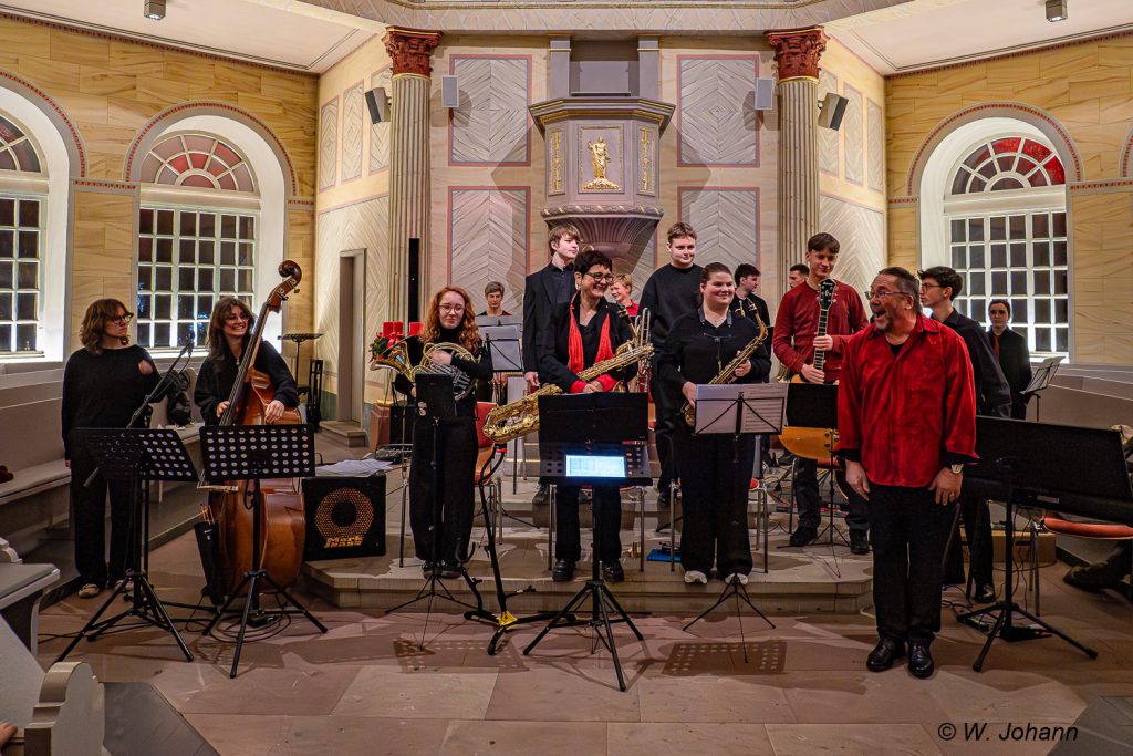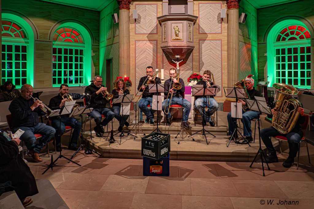 Das kulturelle Programm war in diesem Jahr ein voller Erfolg – auch wenn das Wetter draußen nicht mitspielte. Besseres Wetter in der Kirche lockte die Menschen dann zum kulturellen Programm. Christel Weins erzählte Geschichten für Kinder, und die Blechformation „Heilig’s Blechle“ des OVB sorgte mit festlicher Blasmusik für gute Stimmung. Die Bigband „BlueDate“ des Gymnasiums am Schloss, unter der Leitung von Matthias Ernst, begeisterte mit dem Programm „Have Yourself a Little Swinging Christmas“. Der Sonntag begann mit einem ökumenischen Gottesdienst, der den Weihnachtsmarkt feierlich eröffnete. Am Nachmittag las Christel Weins erneut für Kinder, da leider Laura Krieger krankheitsbedingt ausfiel.