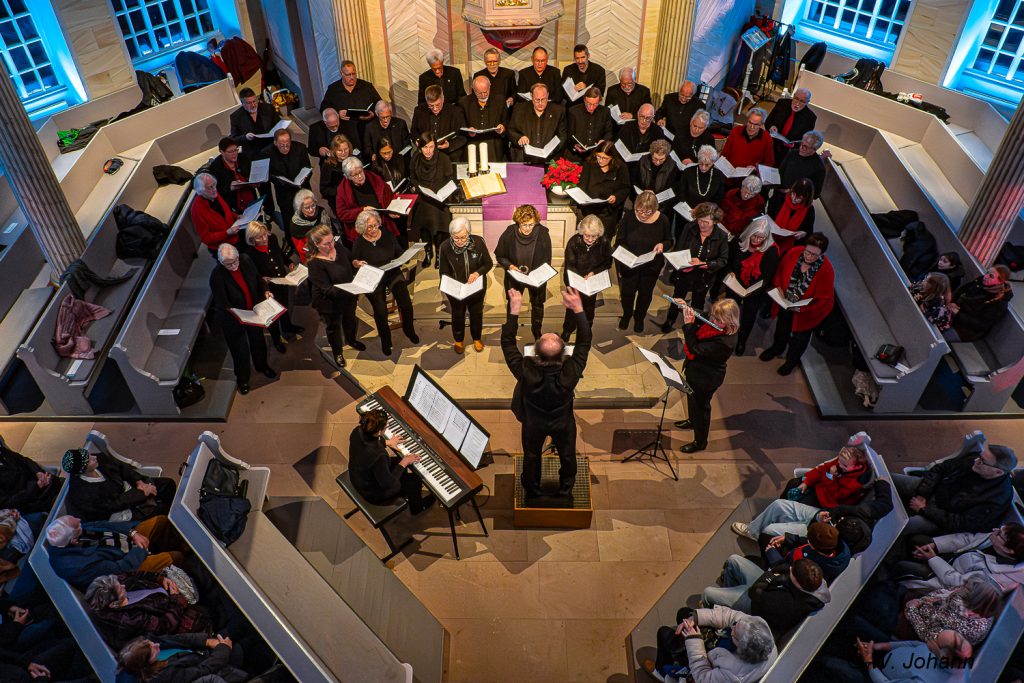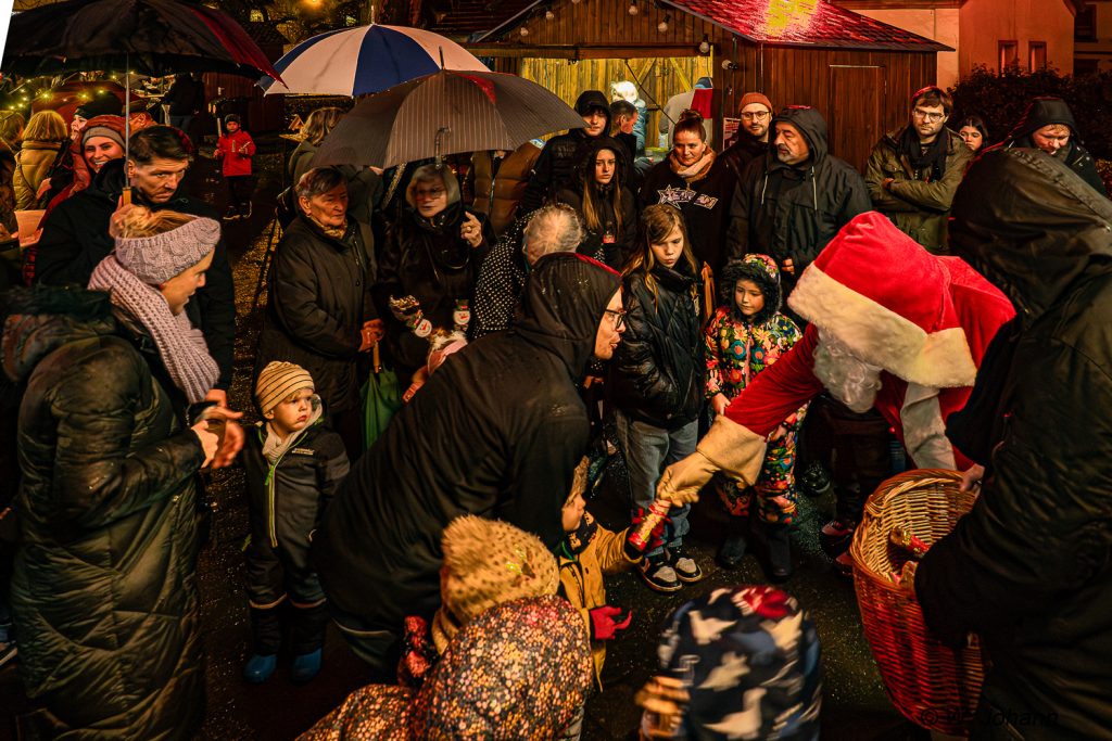 Der Nikolaus stattete dem Markt trotz des schlechten Wetters einen Besuch ab und hatte für die kleinen und großen Gäste ein Geschenk parat. Zum Abschluss des Marktes lud der Gemischte Chor des Sängerchors Bischmisheim zusammen mit dem Chor Unisono zum Konzert „Winter hüllt ein Stadt und Land“ ein und beendete das zweite Adventswochenende mit besinnlichem Chorgesang.